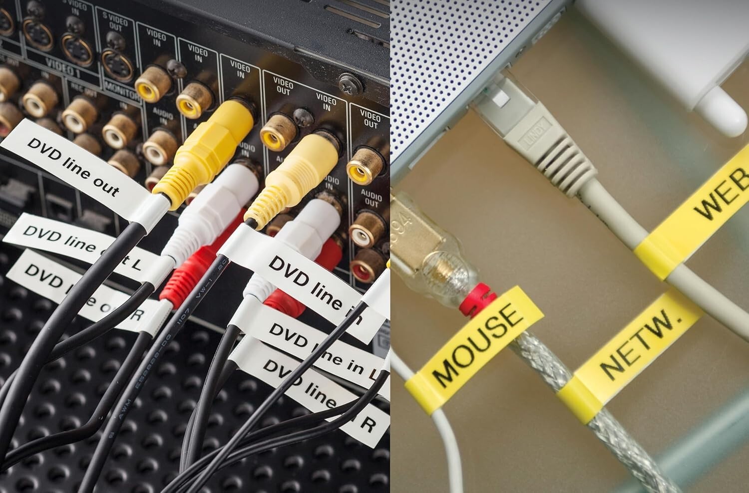 Flag labels are especially popular here—they make it easy to identify both ends of a cable without disturbing the bundle. Combine that with a Brother P-touch PT-E300 or PT-D610BT label maker, and you’ll have professional, color-coded results in seconds.